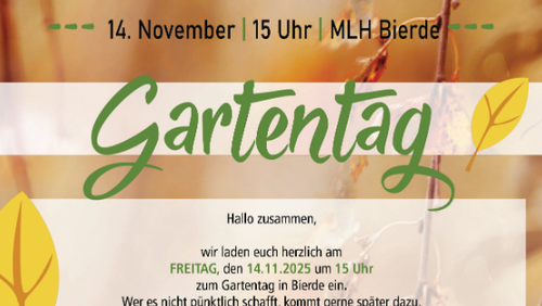 wir laden euch herzlich am FREITAG, den 14.11.2025 um 15 Uhr zum Gartentag in Bierde ein.