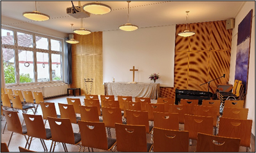 Gemeindezentrum mit Gottesdienstraum, Gruppenräumen, Toiletten, Küche.