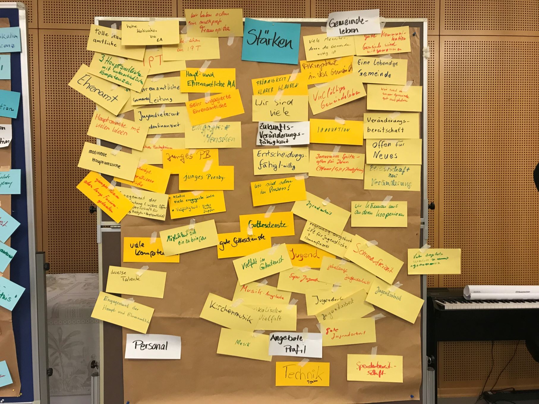 Am 27.10.2023 fand im Gemeindehaus Lahde der erste Workshop statt. Da die Teilnehmerzahl begrenzt war, haben wir gezielt ehrenamtliche Mitarbeitende aus möglichst allen Gruppen der Gemeinde angesprochen. Gemeinsam haben wir die aktuelle Lage der Gemeinde mit Stärken und Schwächen analysiert. Danach haben wir in zwei Gruppen zur Gebäudestruktur und dem Profil unserer Arbeit weitergedacht. Den Blick in die Zukunft mit Handlungsoptionen konnten wir noch nicht abschließen.