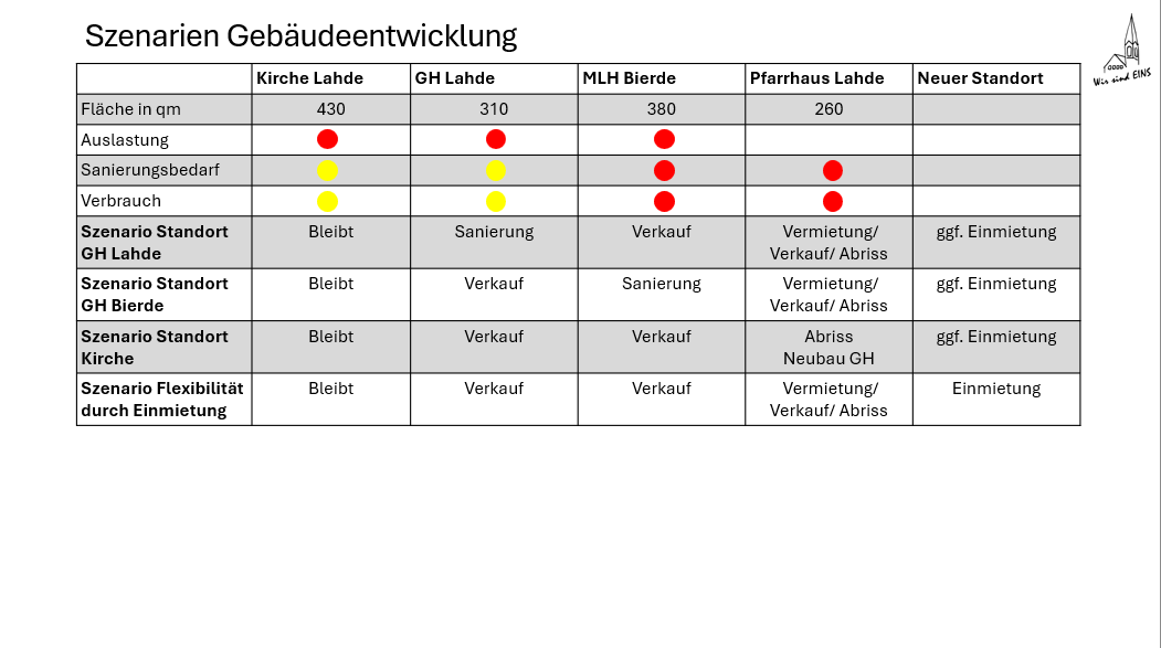 Deshalb werden nun parallel schon Nachnutzungsideen für das Gemeindehaus Lahde und Martin-Luther-Haus Bierde gesucht.