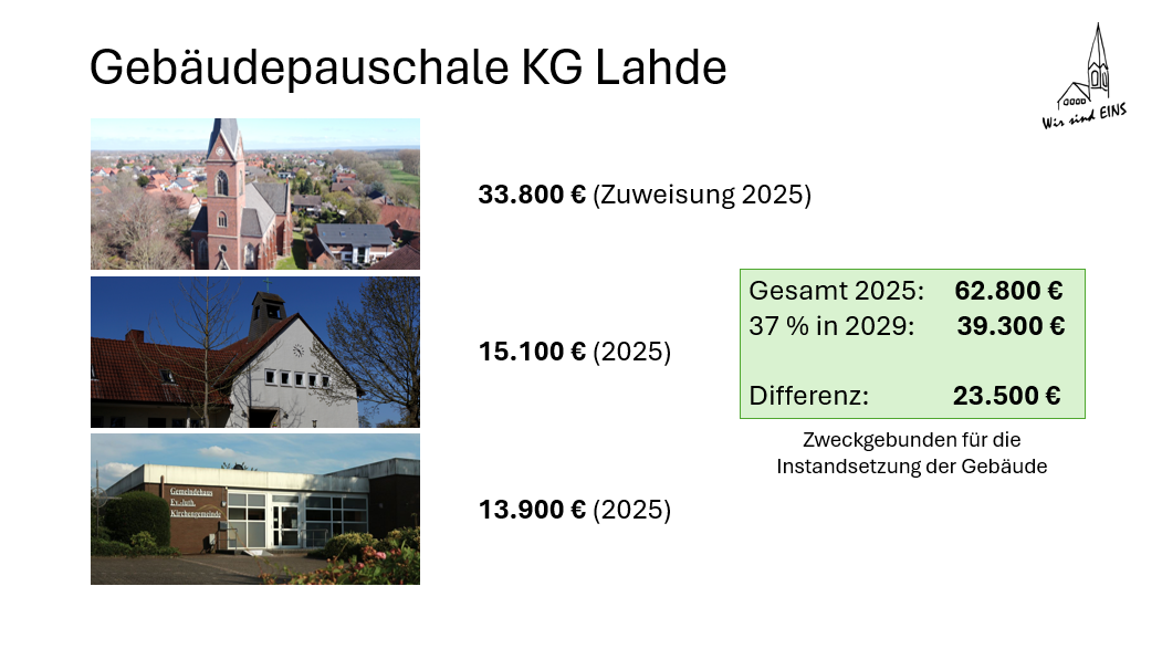 Das o.g. Verhältnis zwischen Gemeindeglieder- und Gebäudepauschale wird sich aufgrund zurückgehender Kirchensteuer-Einnahmen bis 2029 voraussichtlich umkehren, da die Gebäudepauschale fest ist.
