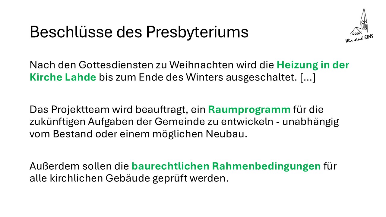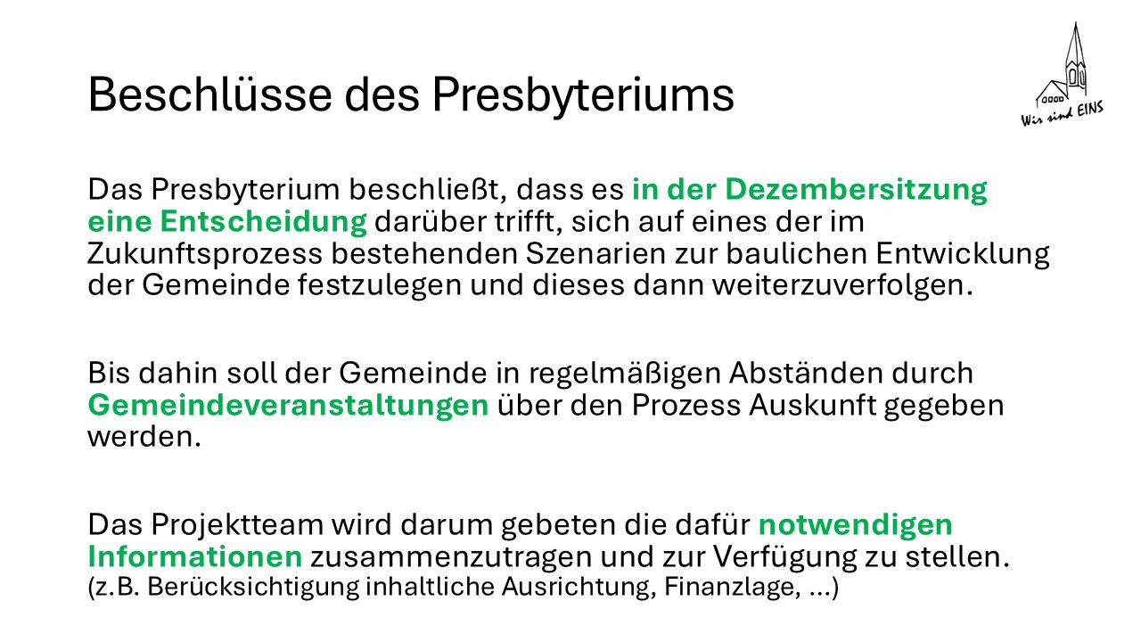 Auf dieser Folie sind die Beschlüsse des Presbyteriums aus dem Dezember 2024 wörtlich abgedruckt.