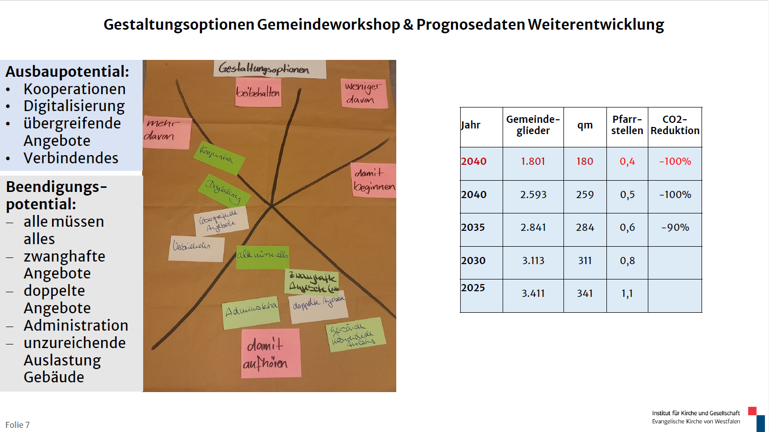 Die letzte Folie zeigt die Gestaltungsoptionen für die zukünftige Gemeindearbeit.