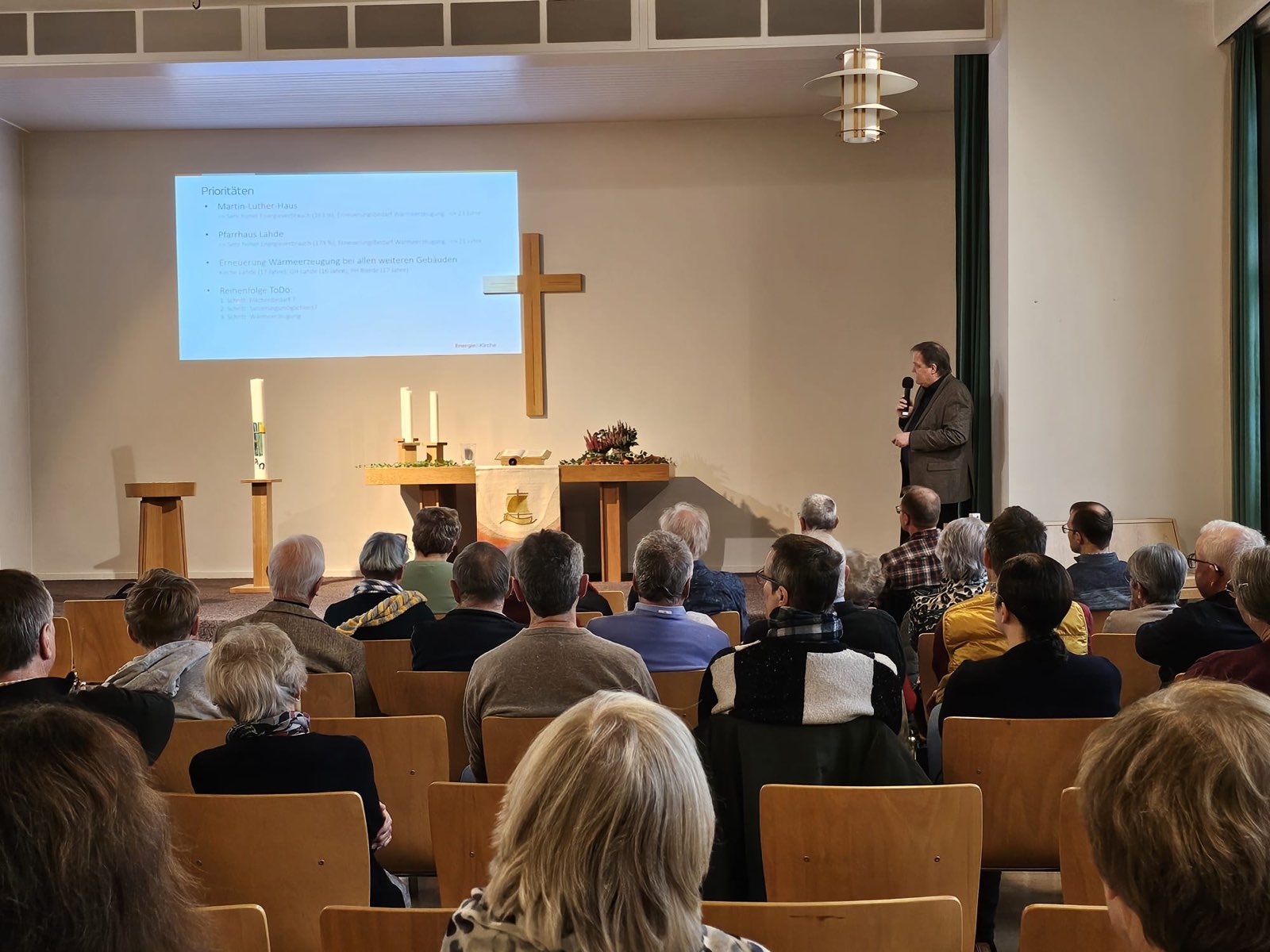 Am 16.11. haben wir im Martin-Luther-Haus Bierde über die Zukunft unserer Gebäude informiert. Energieberater Christian Dahm sowie Judith Kuhn und Anja Buchholz vom Institut für Kirche und Gesellschaft haben Zahlen und Hintergrundinformationen mitgebracht.